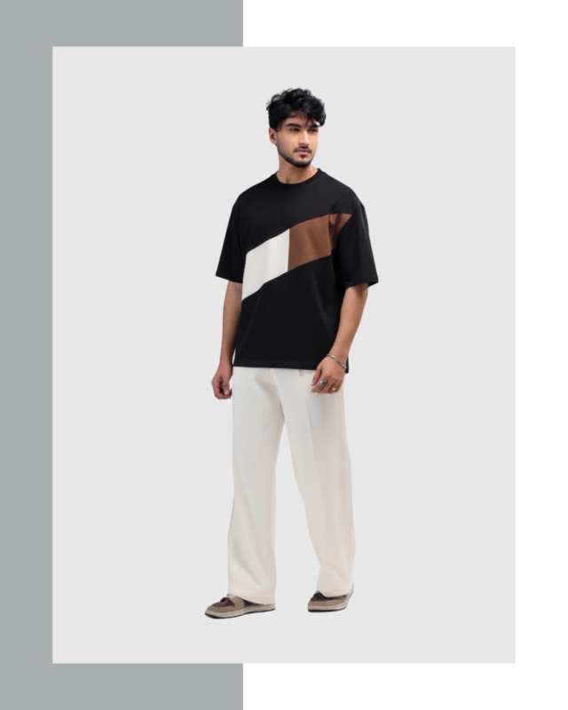 Black with White and Brown Contrast Premium Drop shoulder