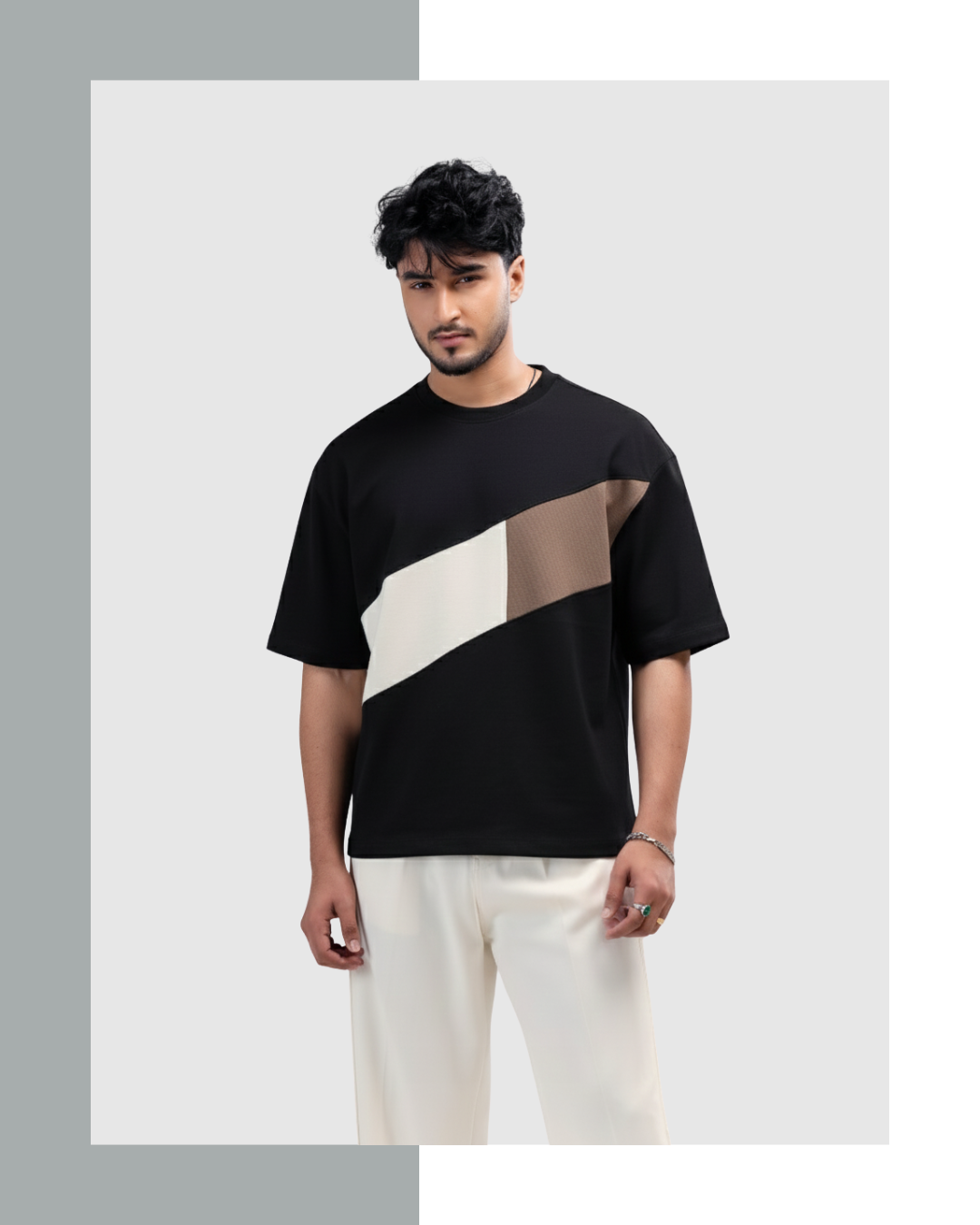Be the first to review “Black with White and Brown Contrast Premium Drop shoulder” Cancel reply